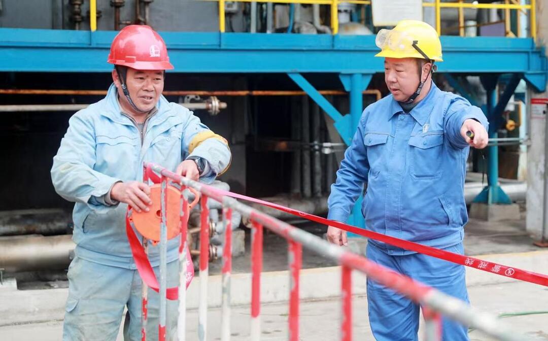 圖為2月25日,湖南石化樹脂部有機(jī)氯區(qū)氯丙烯單元裝置檢修現(xiàn)場,該公司2025年“安全環(huán)保衛(wèi)士”、樹脂部HSE(健康、安全與環(huán)境)組安全員張欲曉檢查作業(yè)情況,指導(dǎo)規(guī)范施工。